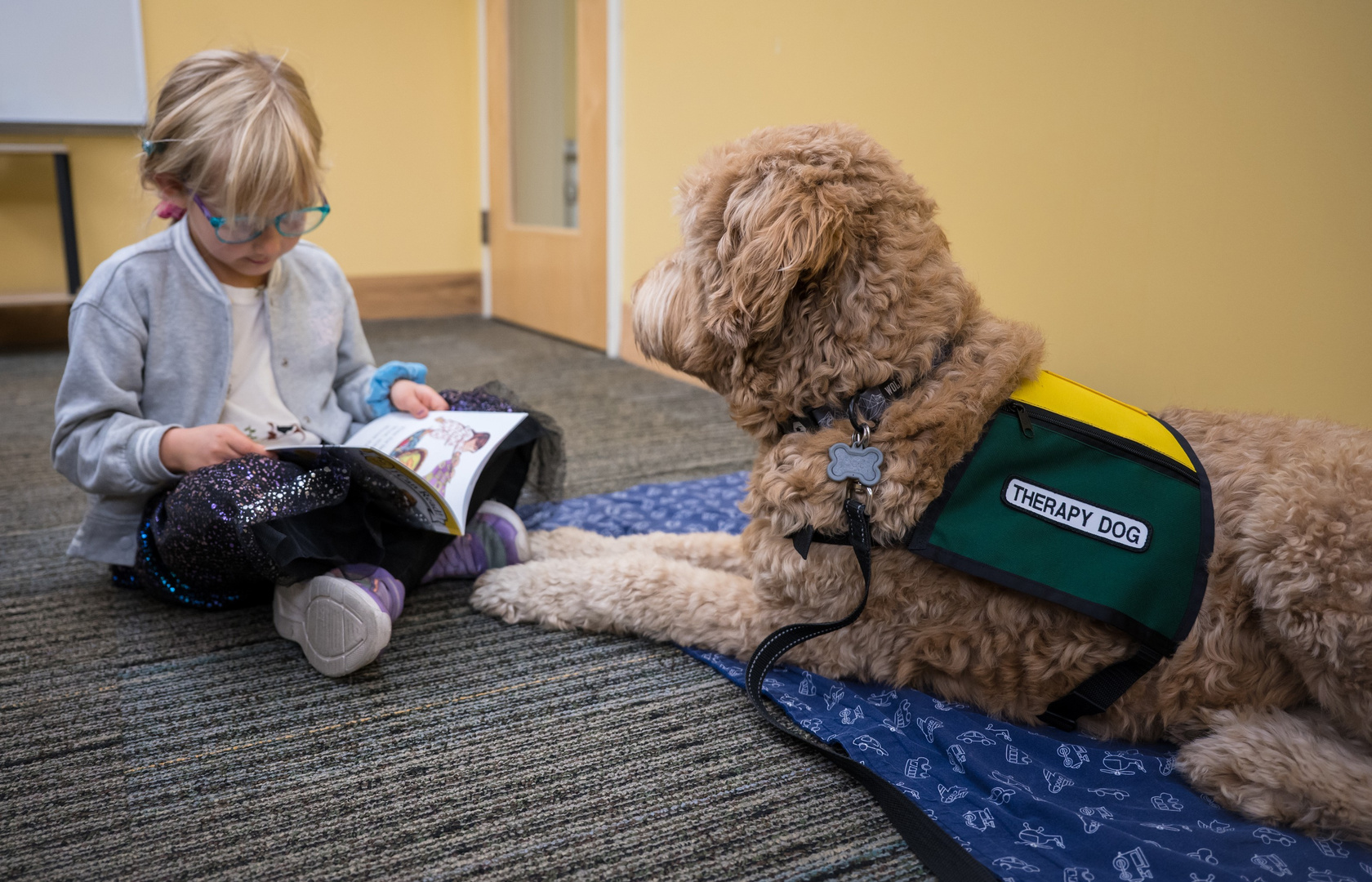 Reading therapy pets from Pet Partners of the Red River Valley are available on the second Saturday of each month (through May) to listen to children practice their reading in a relaxed, informal setting. Kids in Kindergarten to 6th grade are invited to register for a 15-minute session with one of our non-judgmental listeners. Sessions begin at 10 a.m. at the Main Library. Bring your own books to read or choose from a selection of library books. Call the Children’s Services desk at 701.241.1495 to register for the current month.